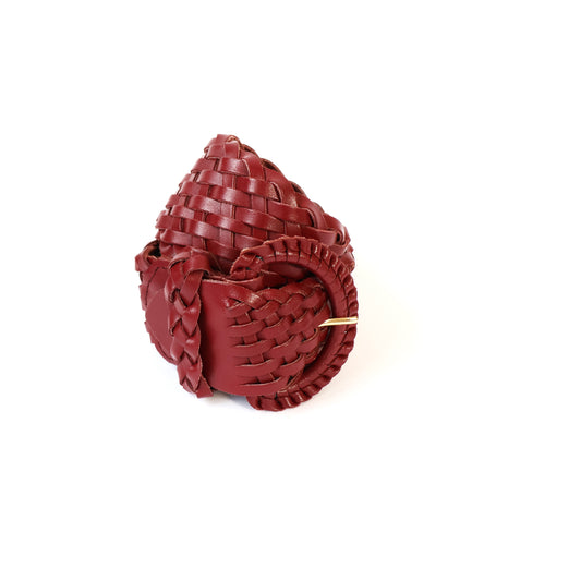 Vintage Maroon Genuine Leather Woven Belt