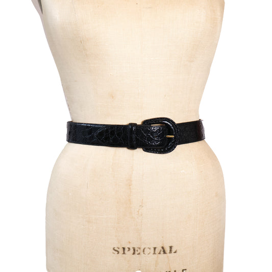 Vintage Black Genuine Leather Alligator Texture Belt