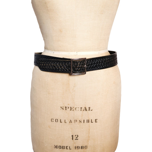 Vintage Black Genuine Leather Texture Embossed Belt