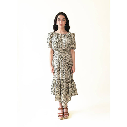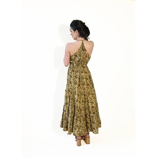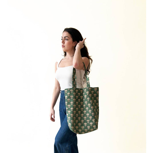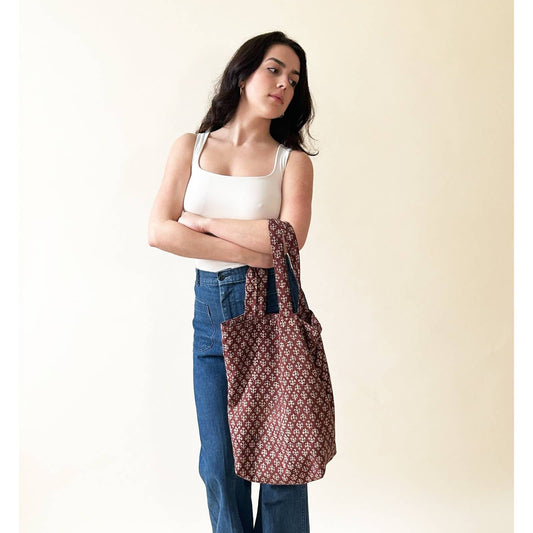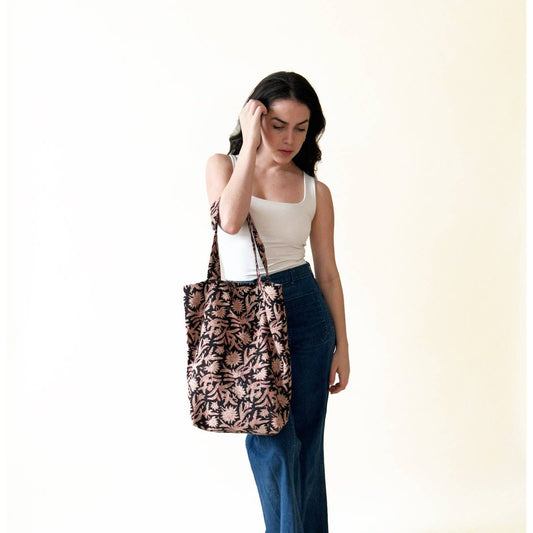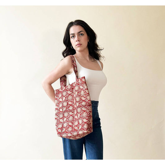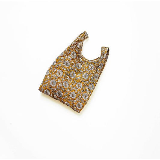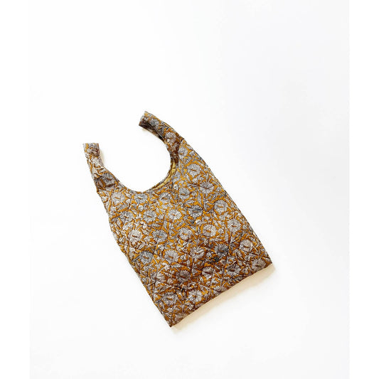Yellow Floral Boho Print Quilted Mini Grocery Bag