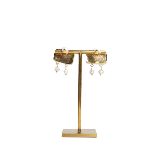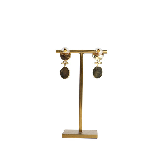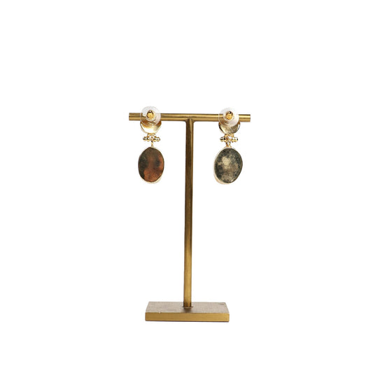 Eclectic Inventory Gold Toned Natural Stone Earrings with Pearl Drop | Jasper Style