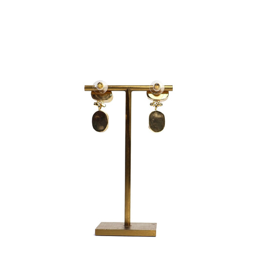 Eclectic Inventory Gold Toned Natural Stone Drop Earrings | Pearl and Onyx Style