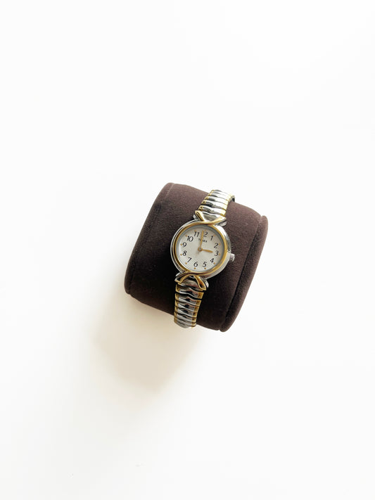 Vintage Two Tone 90s Watch w/ Stretch Band Timex