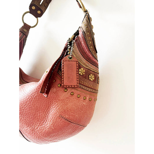 Vintage Coach Large Pink Boho Brown Leather Bag