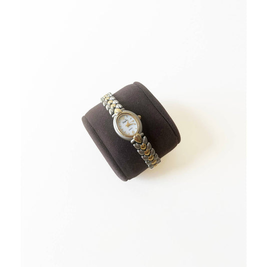 Vintage Two Tone 90s Watch w/ White Face Stretch Band