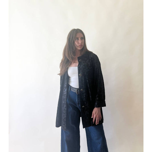 Vintage 90's Leather Black Flower Print Jacket Bally