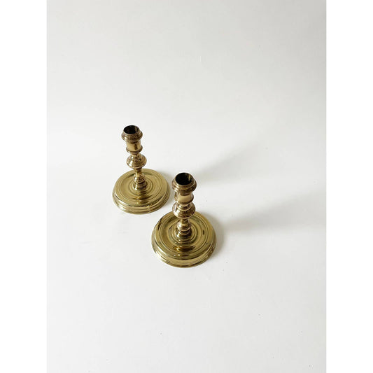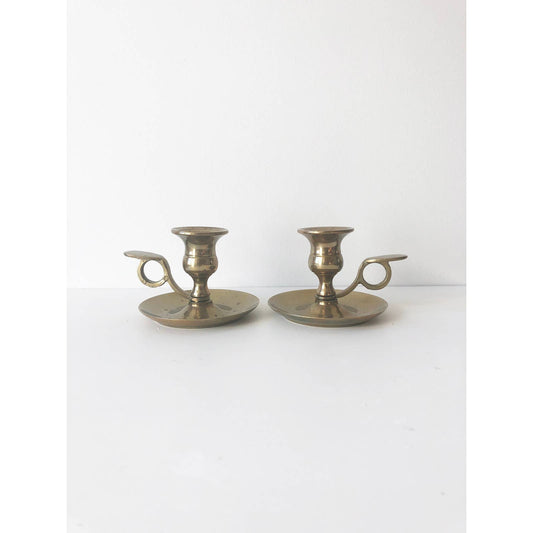 Pair of Vintage Solid Brass Chamber Sticks Hand
