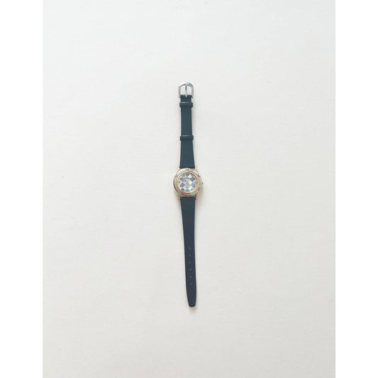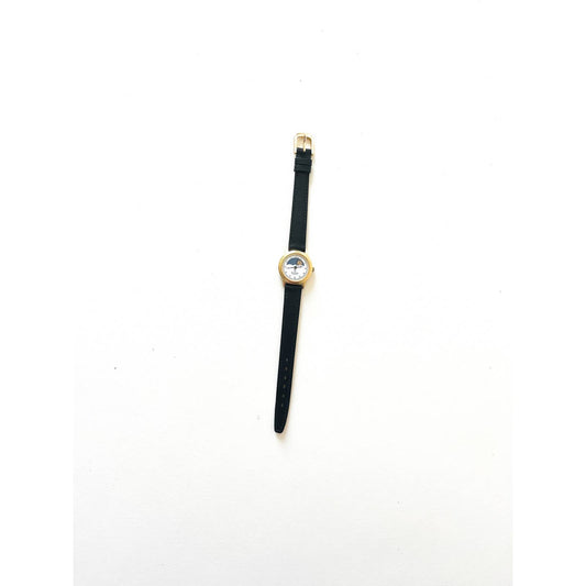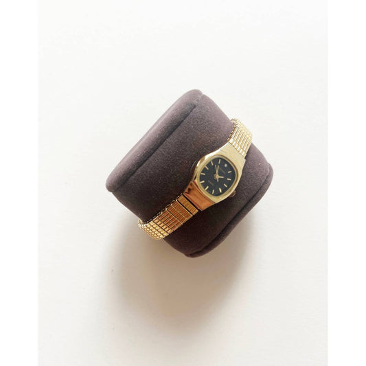 Vintage Gold 90s Watch w/ Black Face Stretch Band