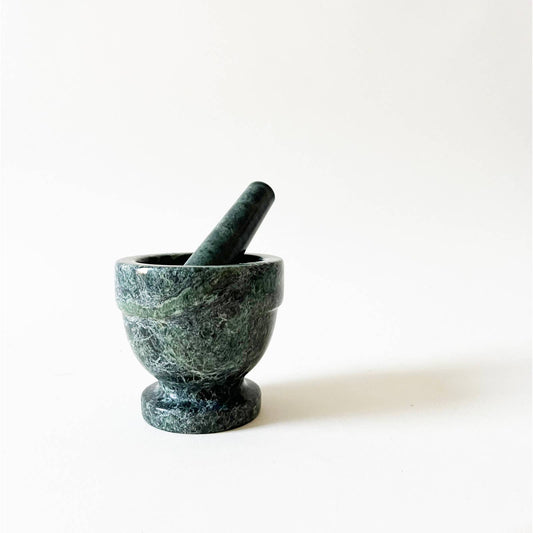 Vintage Green Marble Mortar and Pestle
