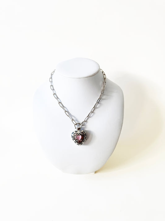Watch Heart Necklace with Pink | 925 Silver Chain