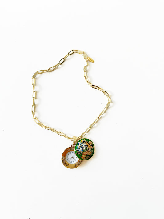 Watch Flower Charm Necklace | 925 Gold Vermeil Chain