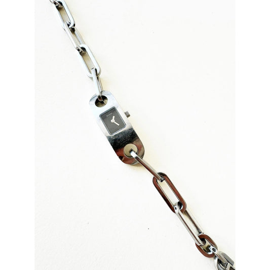Vintage Gucci Silver Chain Bracelet Watch with Black Square Face