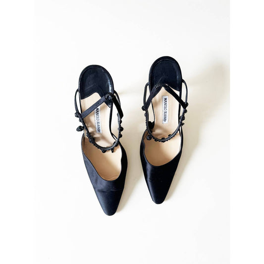 Vintage Manolo Blahnik Slingback Heels with Tie Topl | Size 6 US 36IT