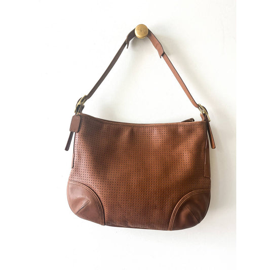 90s Vintage Carmel Brown Coach Leather Perforated Shoulder Bag