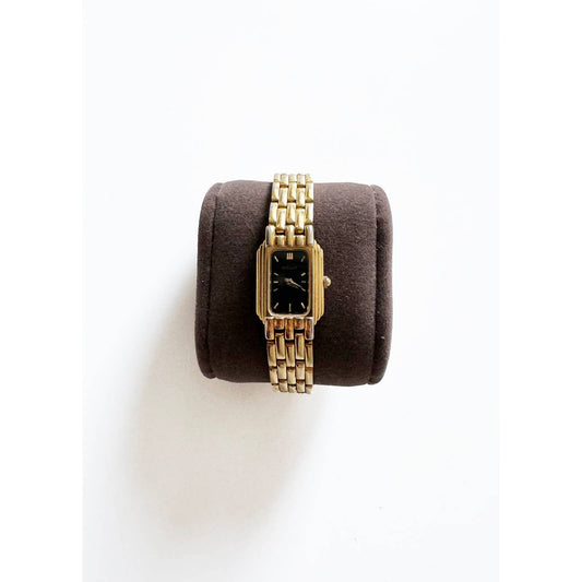 Vintage 90s Small Black and Gold Watch with Rectangular Face | Pulsar