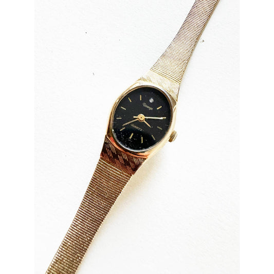 Vintage Matte Gold Watch w/ Oval Black Face