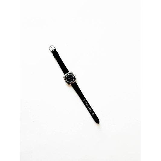 Vintage Leather Watch with Square Face and Silver Details | Anne Klein