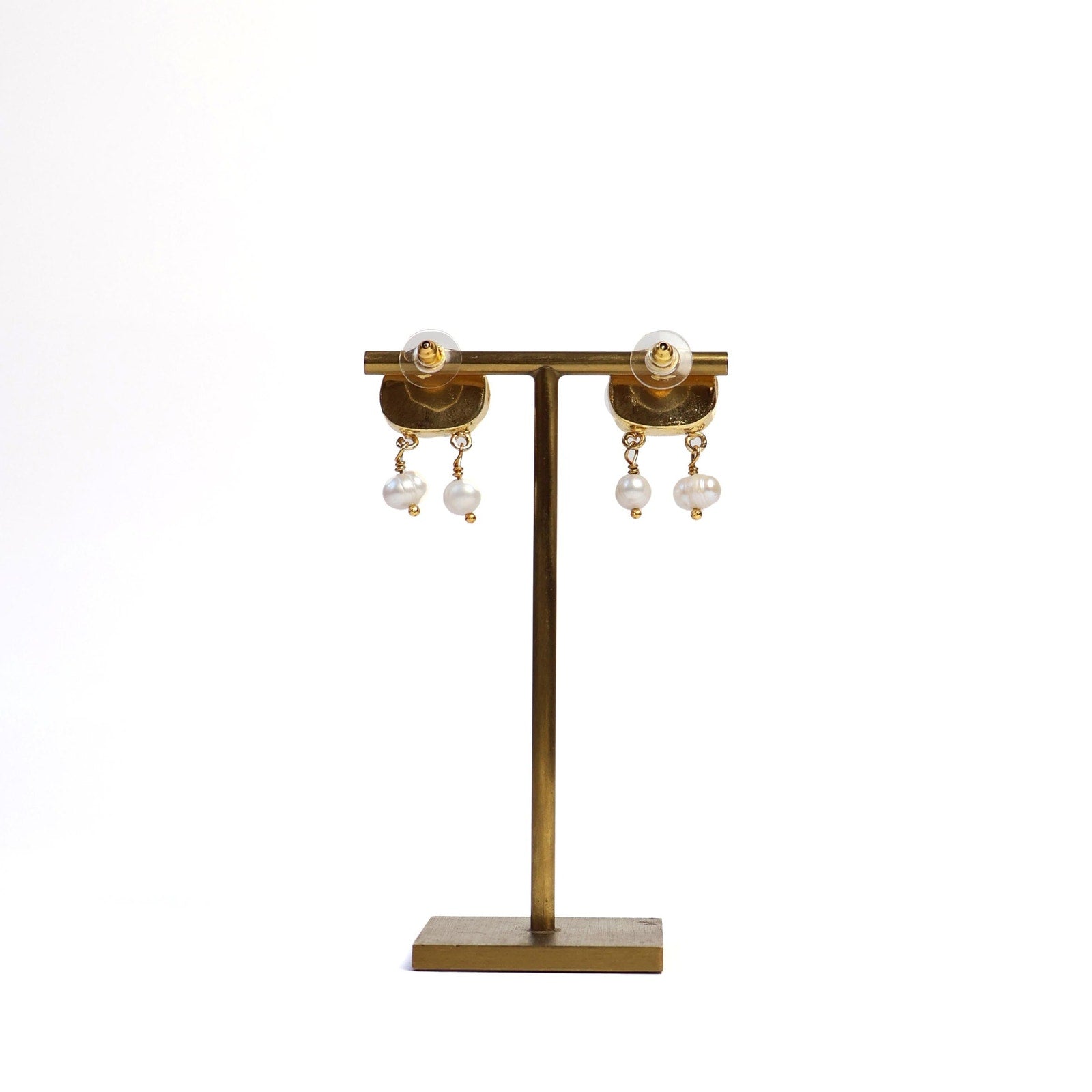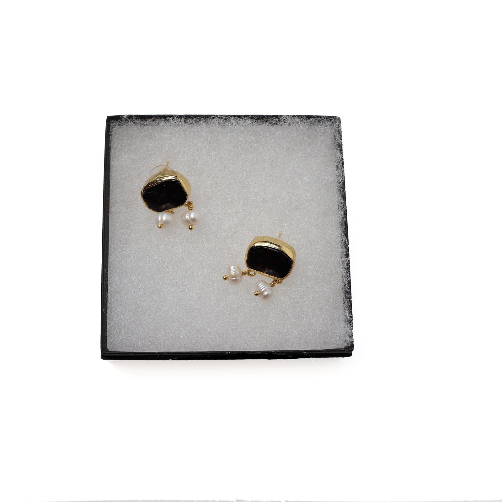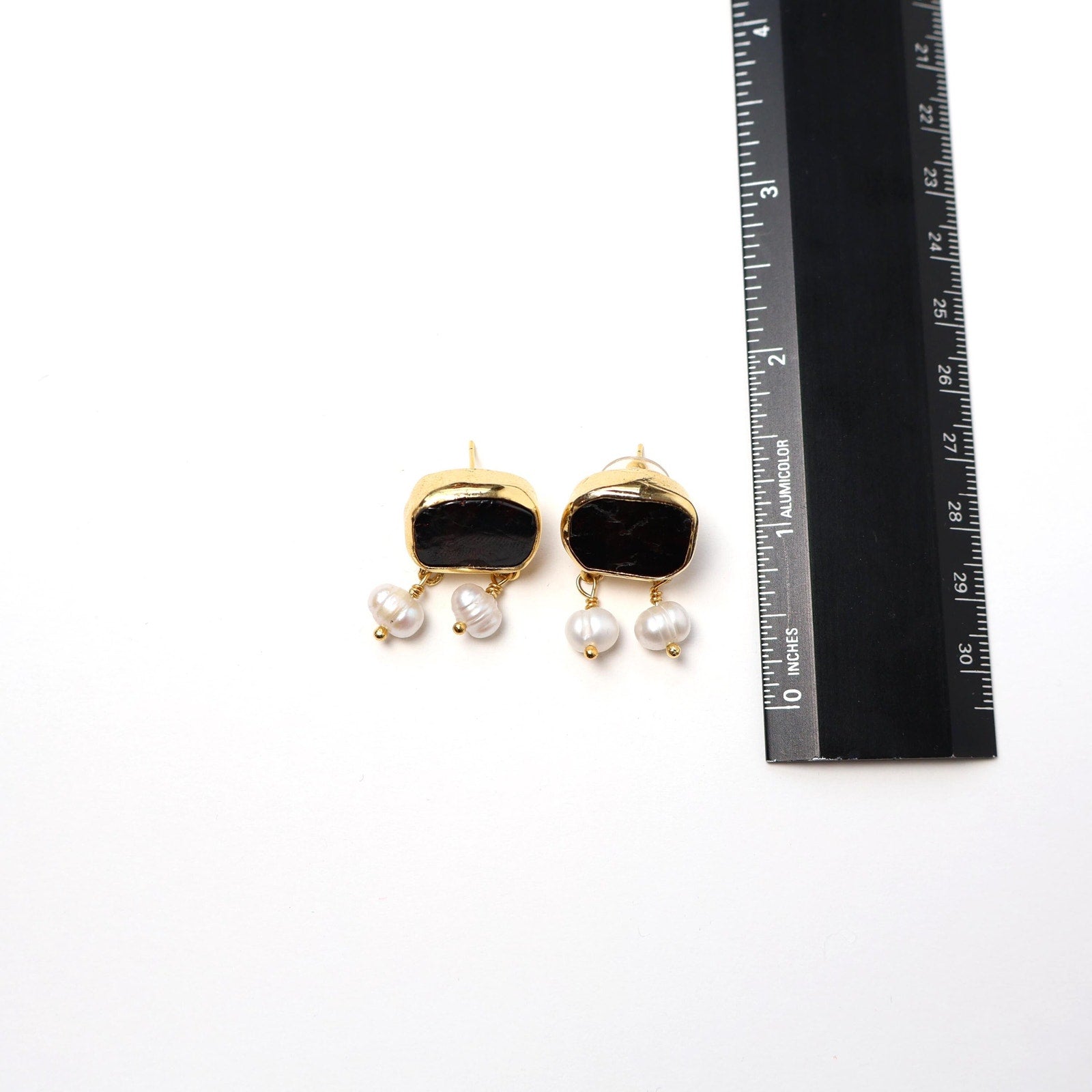Eclectic Inventory Gold Toned Natural Stone Earrings with Drop Pearls | Pearl and Garnet Style