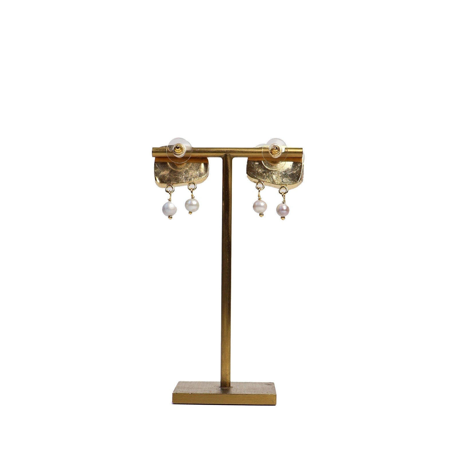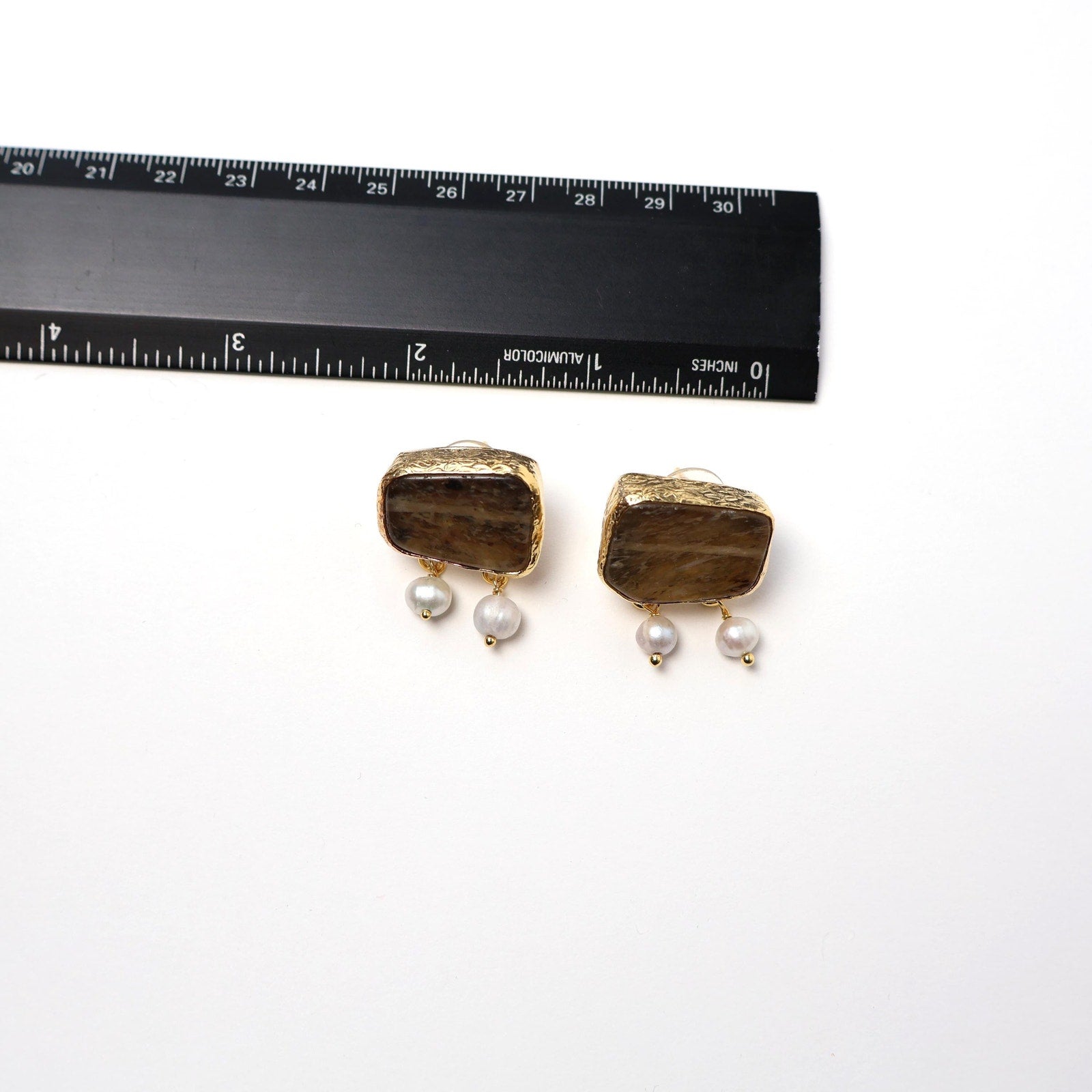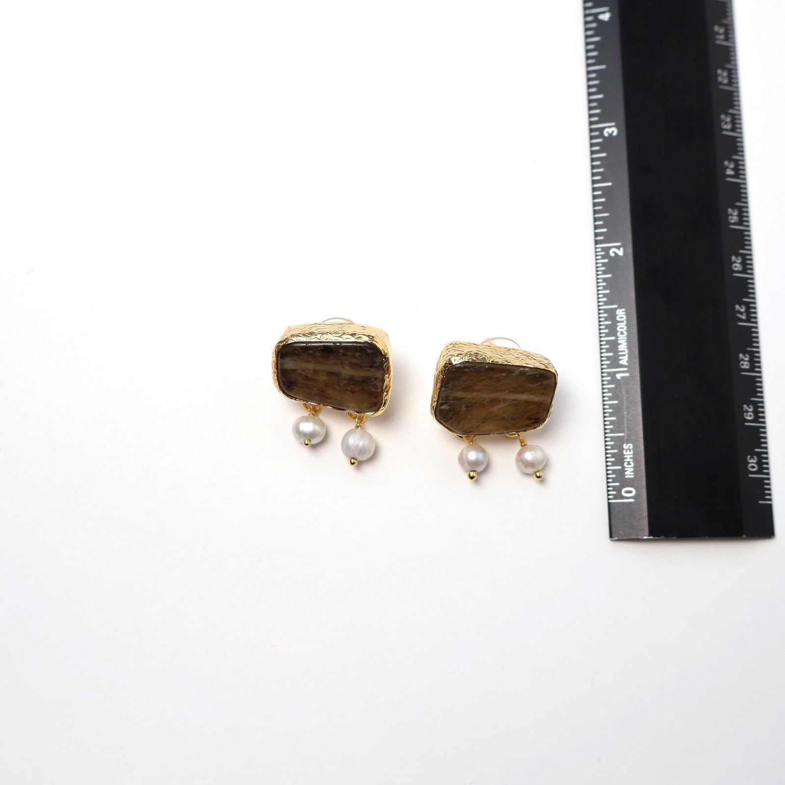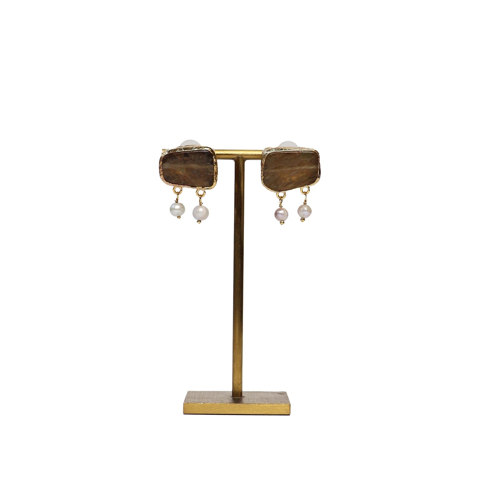 Eclectic Inventory Gold Toned Natural Stone Earrings with Drop Pearls | Pearl and Smokey Quartz Style