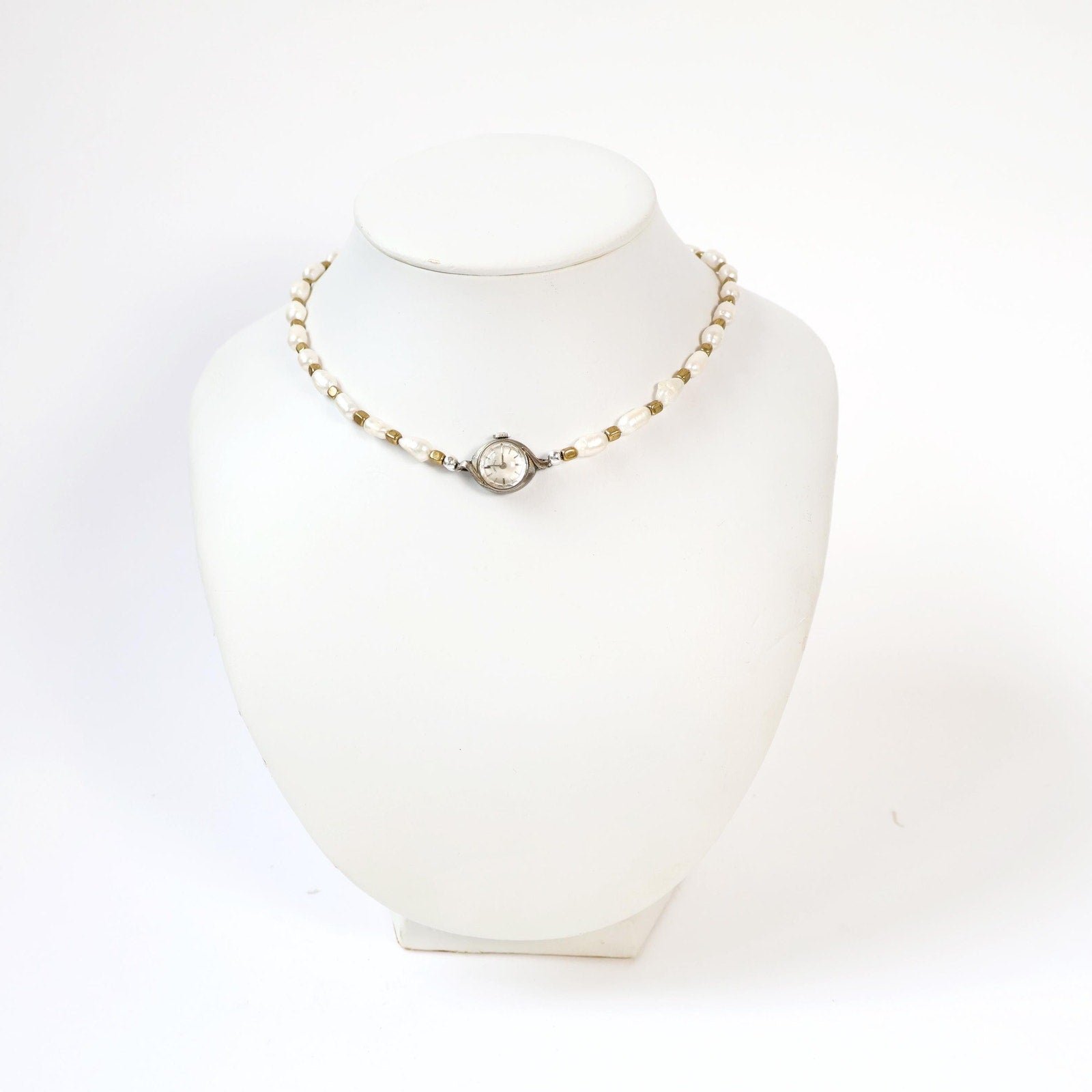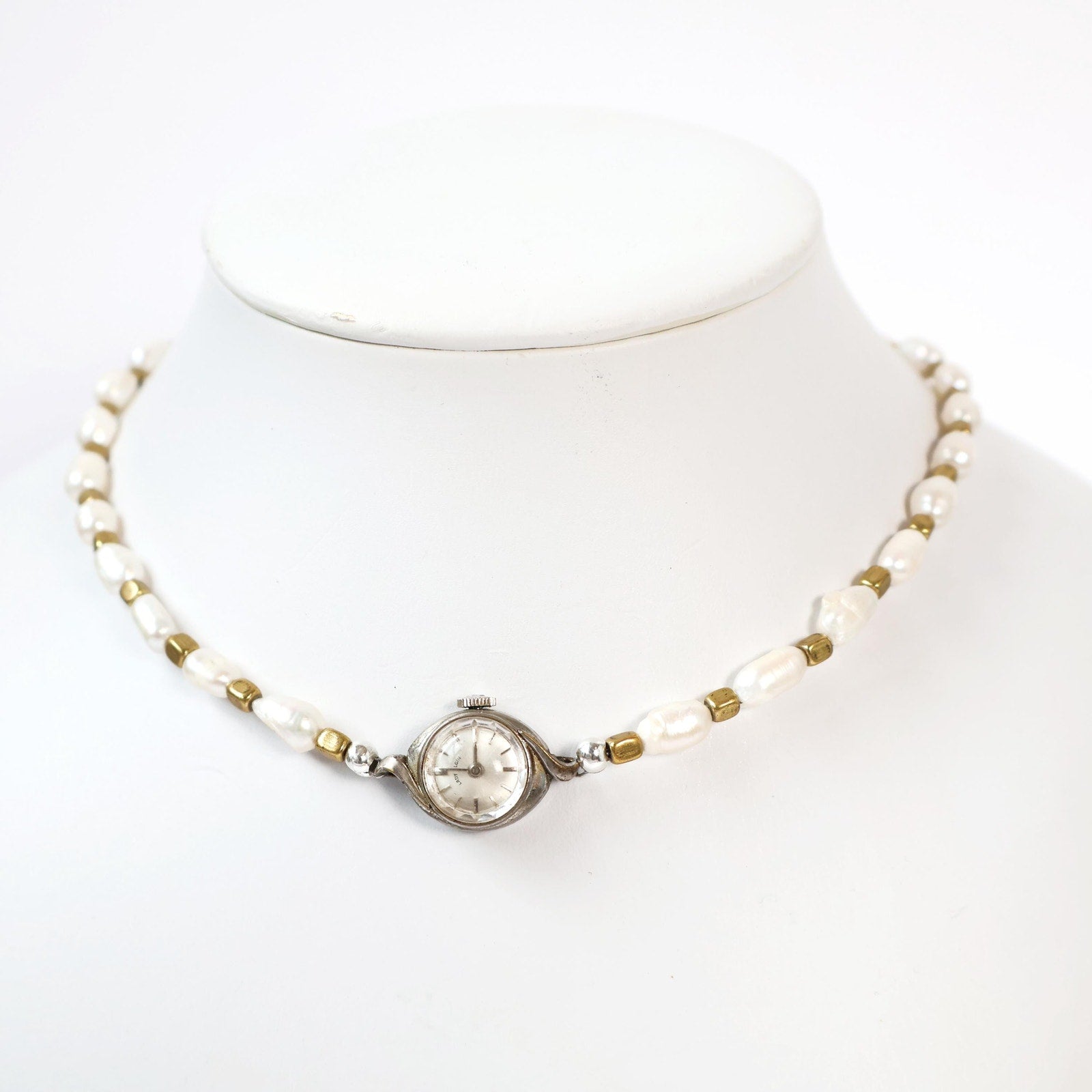 Reworked Gold and Pearl Choker Necklace with Vintage watch Face (Nonworking) | LADY ELGIN