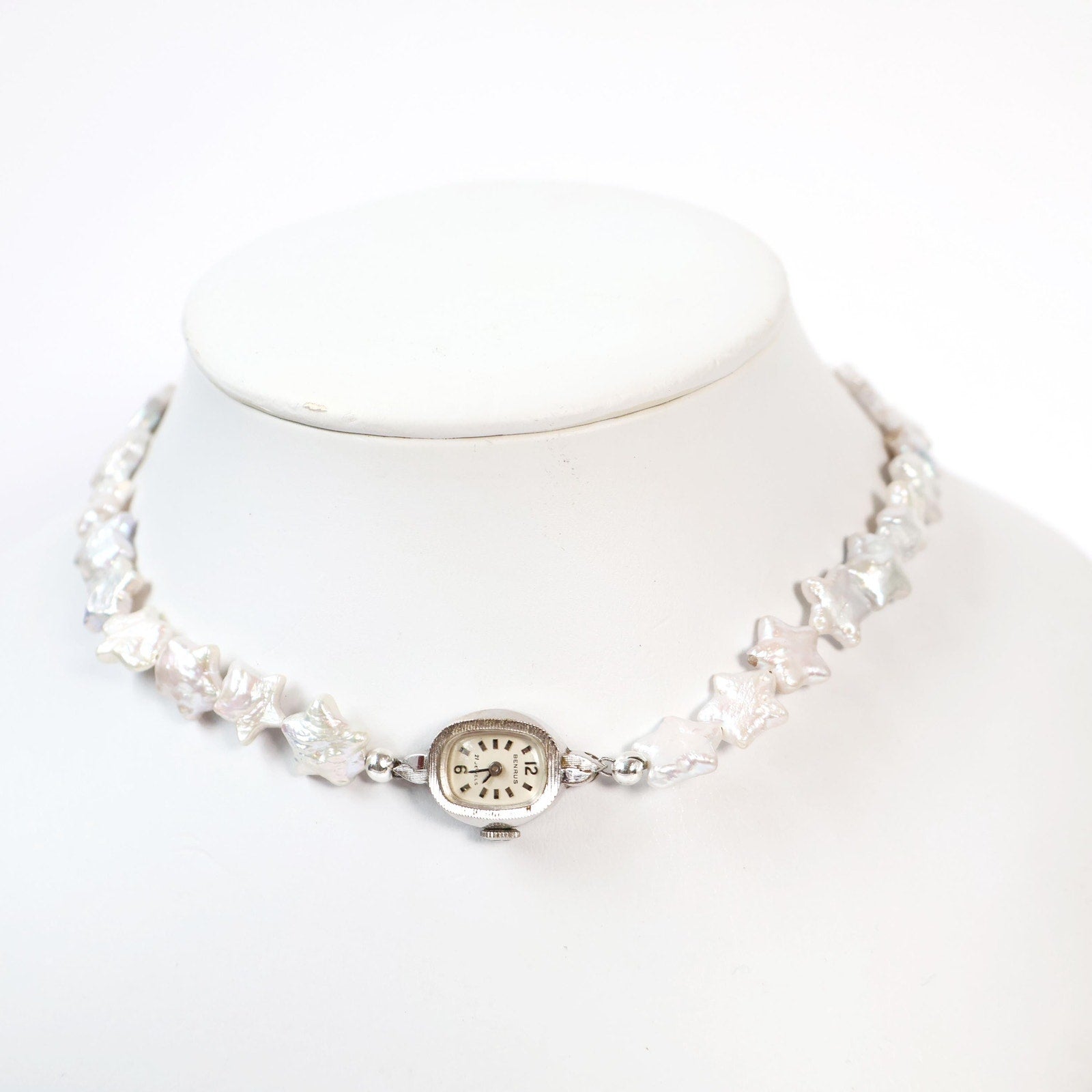 Reworked Star Pearl Choker Necklace with Vintage Watch Face (Nonworking) | BENRUS