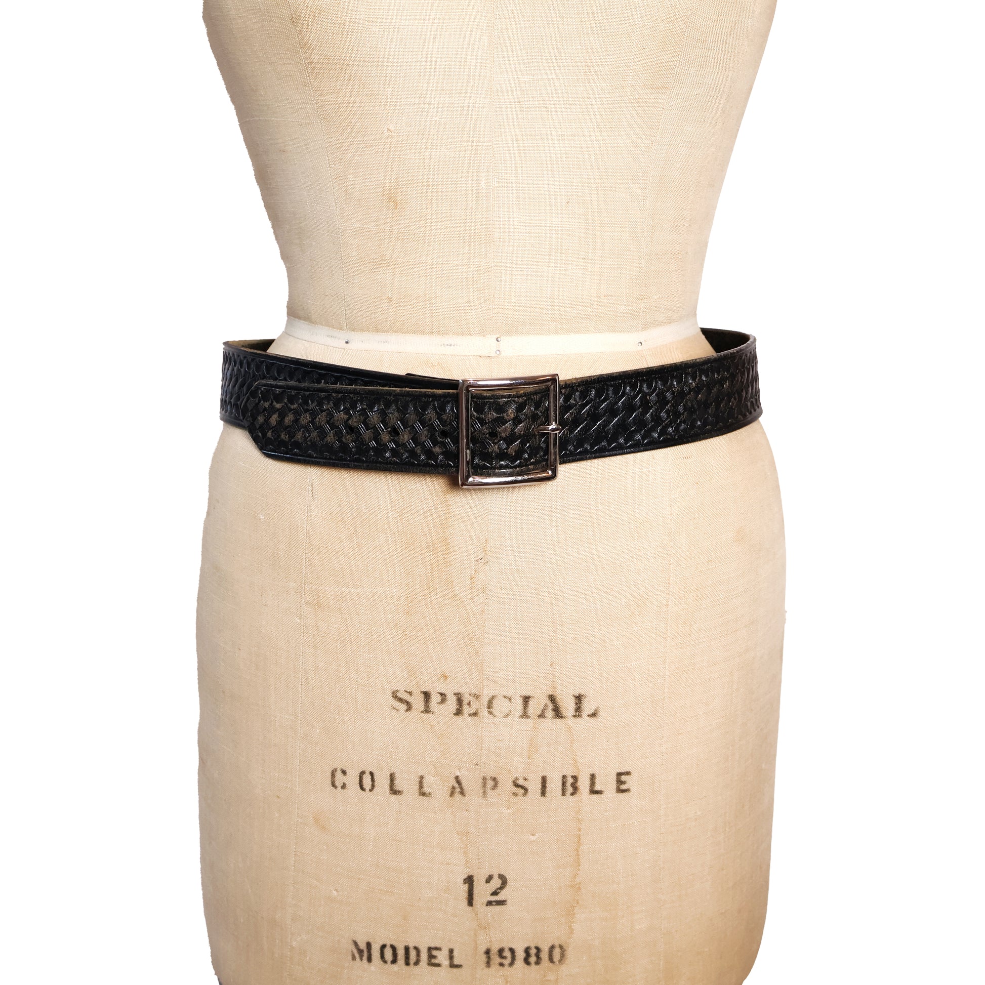 Vintage Black Genuine Leather Texture Embossed Belt