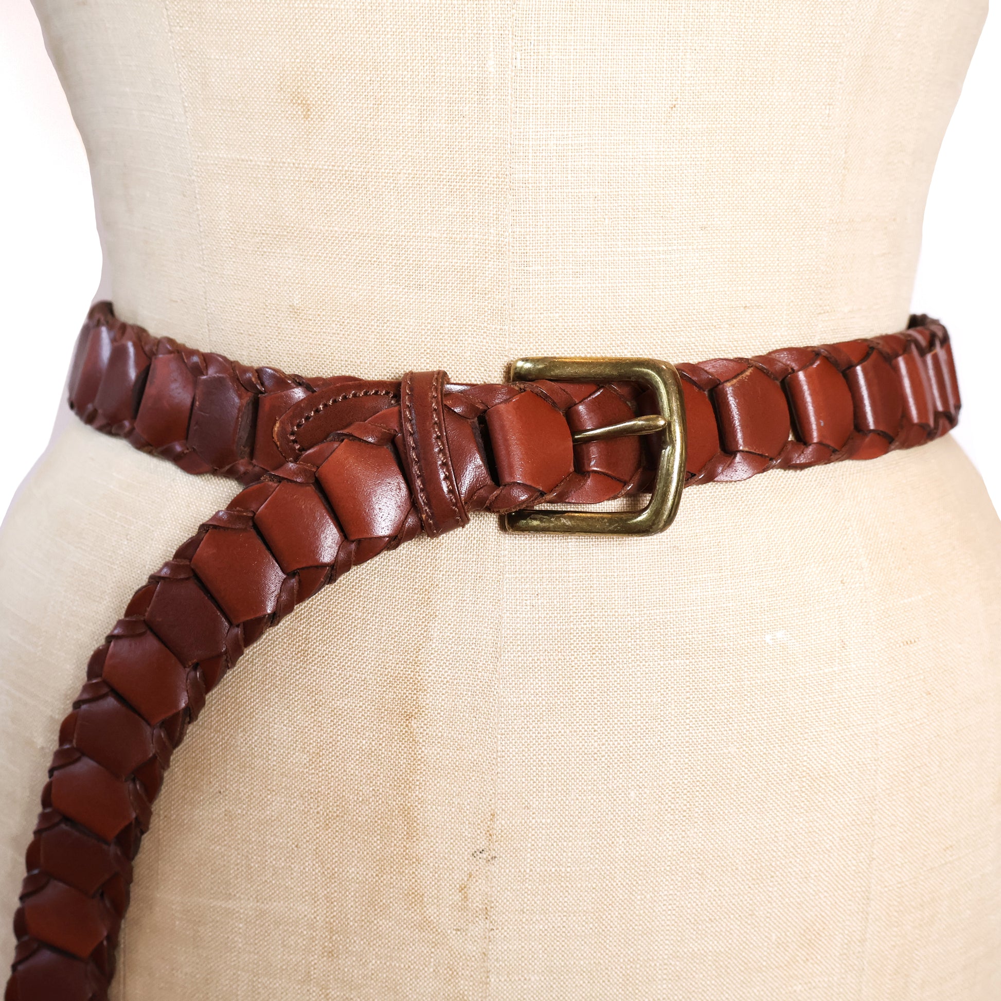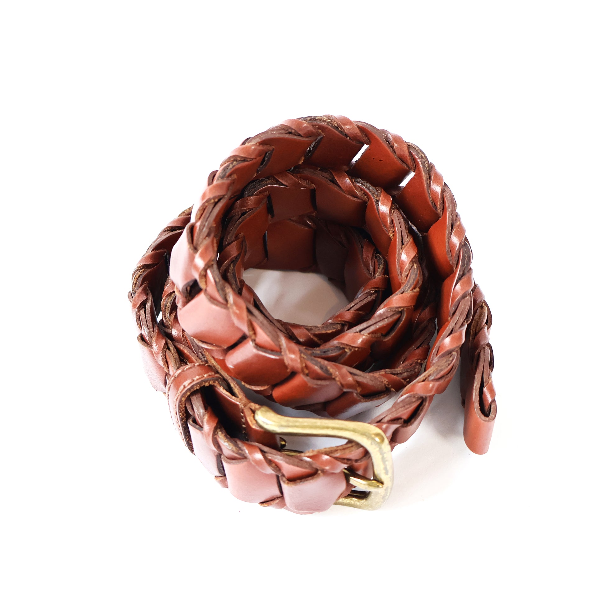 Vintage Brown Genuine Leather Belt with Gold Buckle