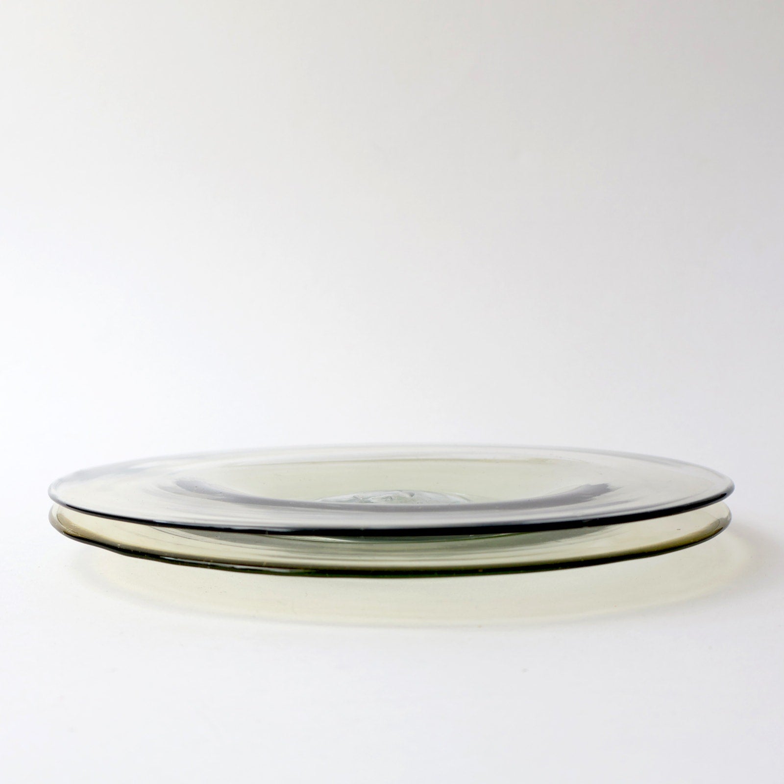 Vintage Clear Handblown Set of 2 Modernist Plates