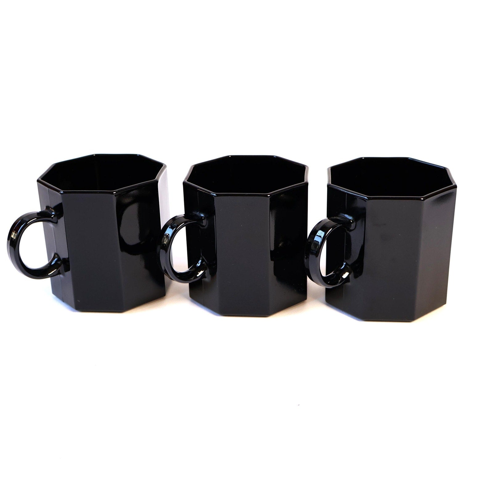 Vintage Octagonal Black Mug Set