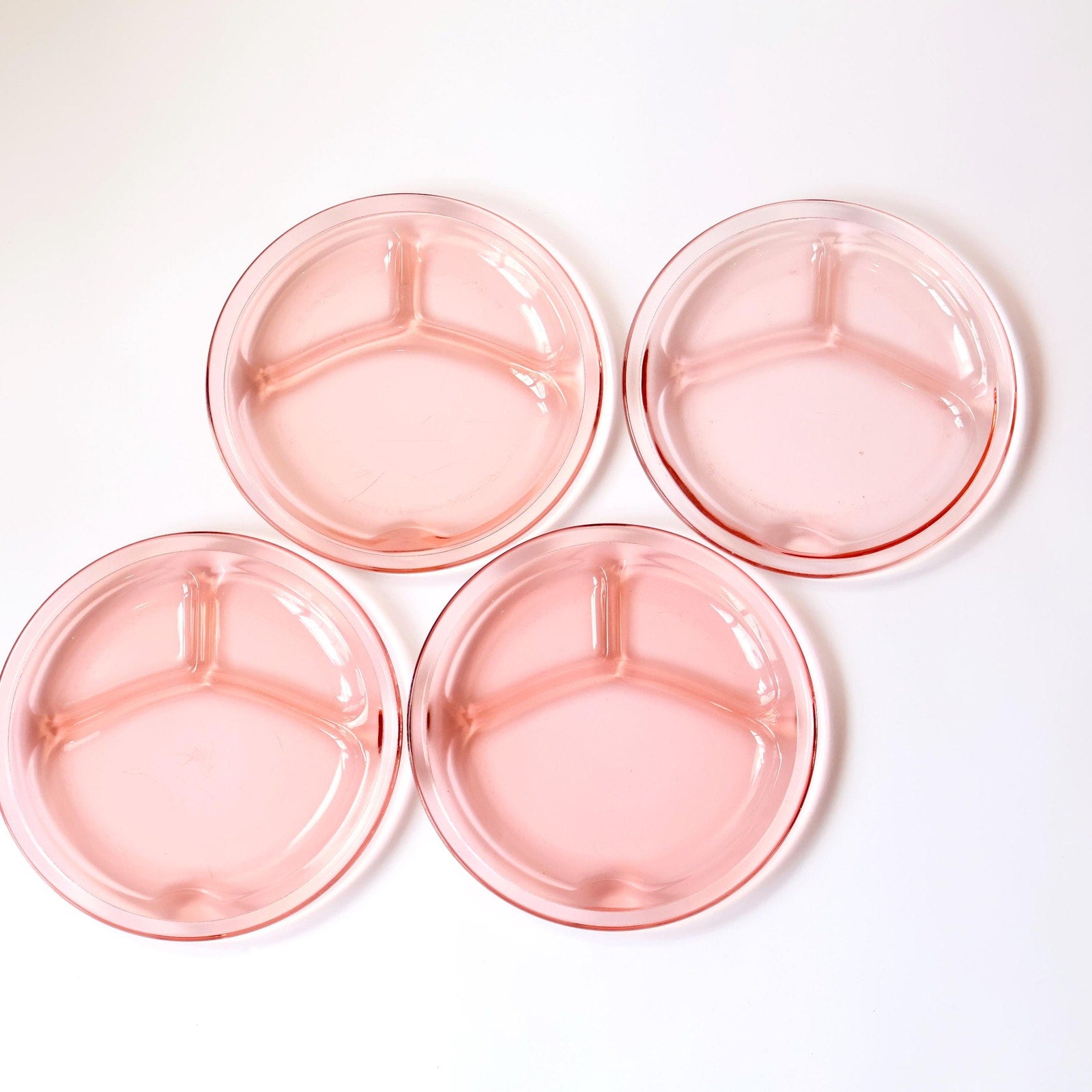 Vintage Pink Glass Plates: MCM Divided Platters, Set of 4